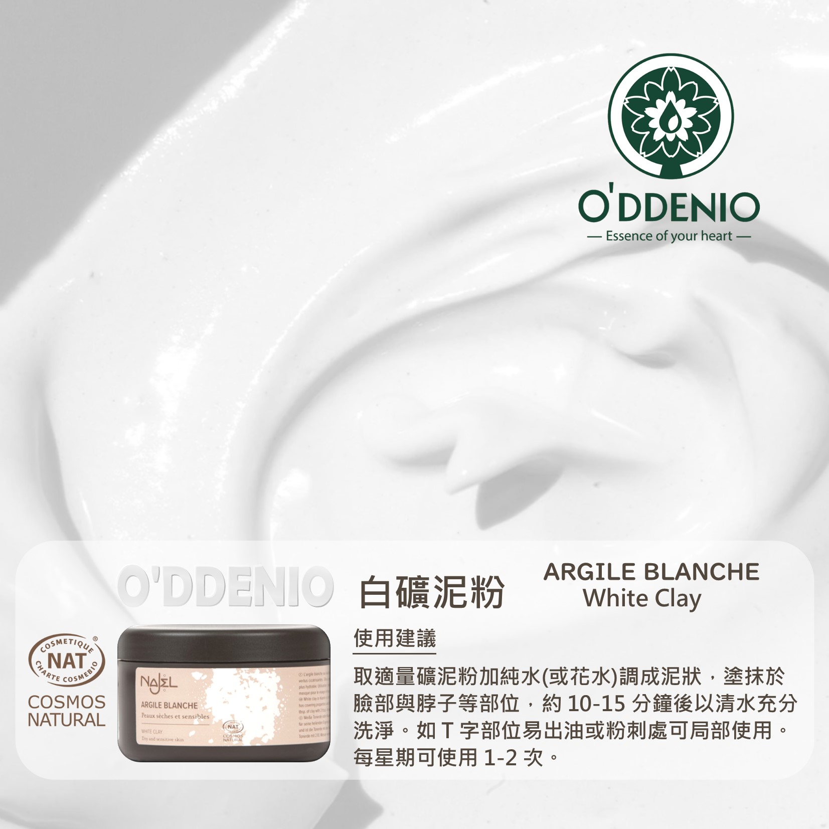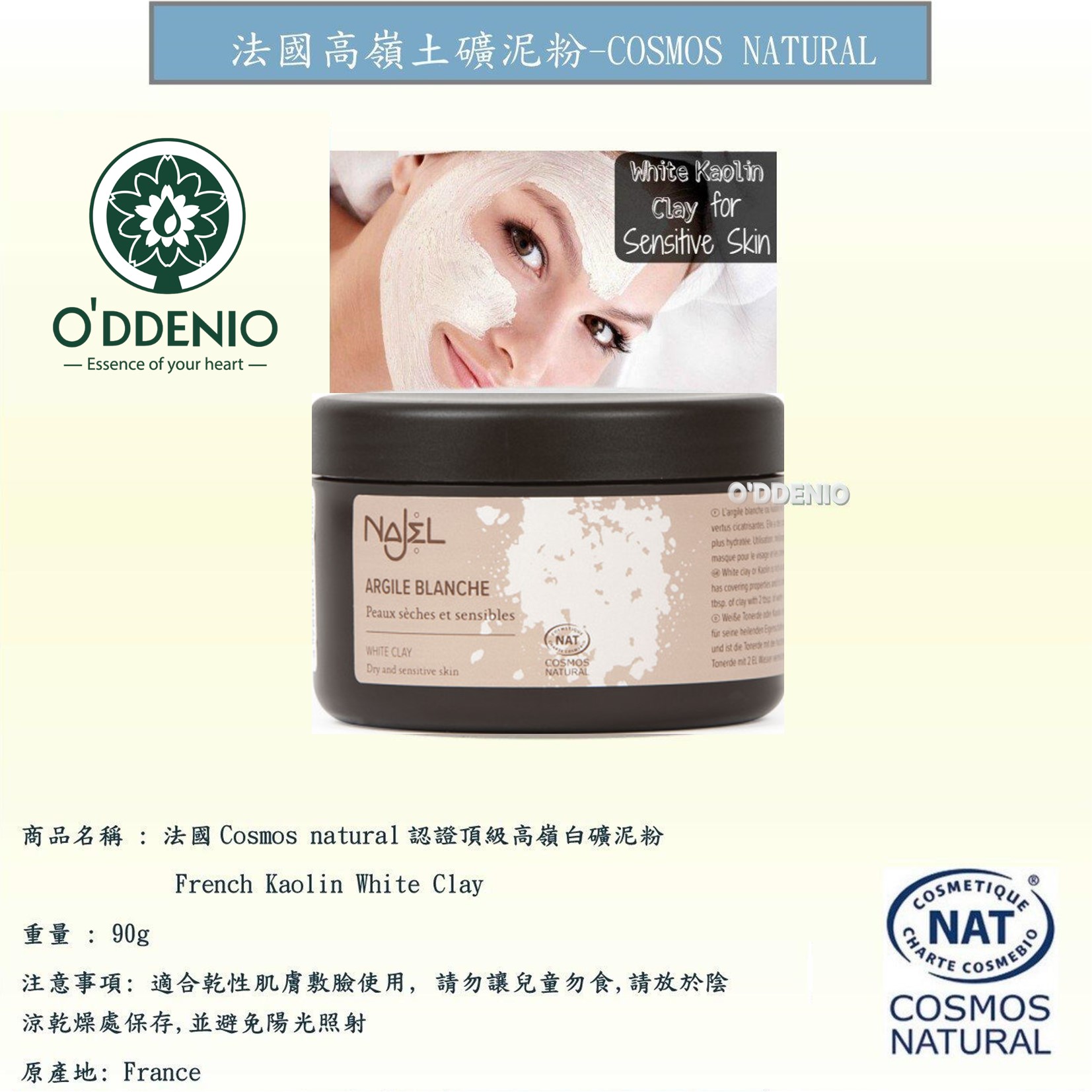 商品名稱:白礦泥粉(法國Cosmos natural認證)